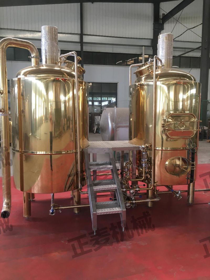 糖化系統(tǒng)是由糖化煮沸鍋、過(guò)濾槽、漩渦沉淀槽及工藝管道組成;糖化煮沸鍋為“蒸汽加熱式;電加熱式;燃?xì)饧訜崾健苯M成。罐體為雙層保溫方式“巖棉或聚氨酯”材料。加熱面積足夠達(dá)到麥汁煮沸蒸發(fā)量,能夠有效阻止熱能耗的外泄。罐體內(nèi)部采用國(guó)際標(biāo)準(zhǔn)不銹鋼精加工而成;外部采用不銹鋼或紫銅鏡面板組成,古樸典雅的外觀造型;即釀出美妙佳釀還有藝術(shù)品的象征。糖化煮沸鍋?lái)敳考友b攪拌系統(tǒng)能使醪液均勻糖化;過(guò)濾槽頂部加裝耕刀系統(tǒng)保證醪液勻速過(guò)濾避免氧化。漩渦沉淀系統(tǒng);采用切線及離心力的作用能夠徹底的分離出多余的蛋白質(zhì)及雜質(zhì),達(dá)到成熟麥汁的純凈度。